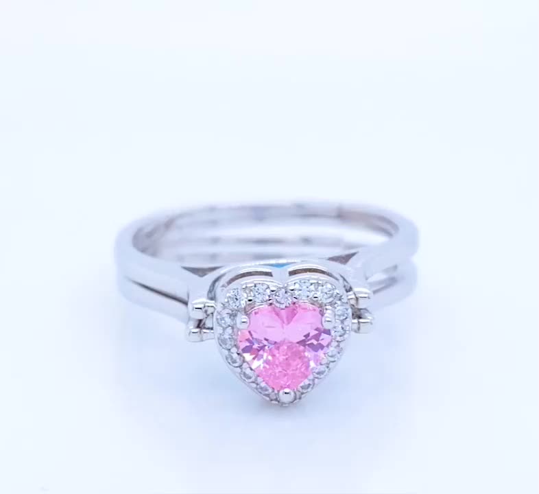 New Product FashionableHeart Shape Adjustable Reversible Flip Ring Rhodium Plated Pure S925 Silver double ring rotating Diamond1